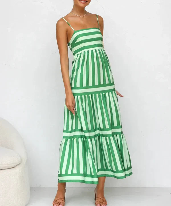 Unser gestreiftes Julia-Kleid verkörpert zeitlose Eleganz mit einem modernen Twist. Mit seiner lockeren Passform bietet es Komfort für alle Körpertypen und ist damit die perfekte Ergänzung für jede Garderobe.
