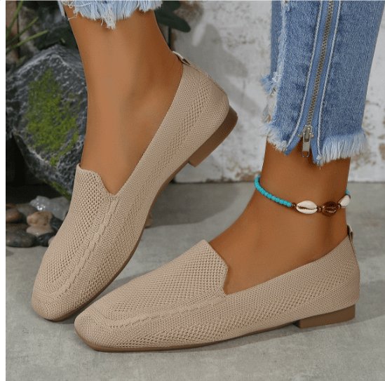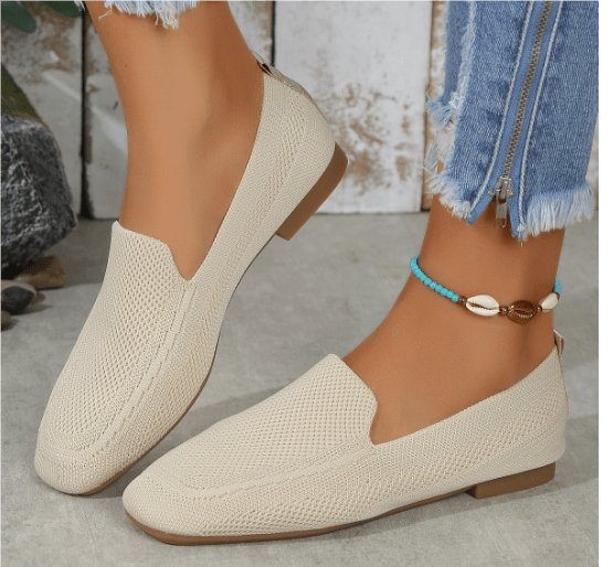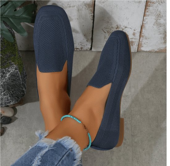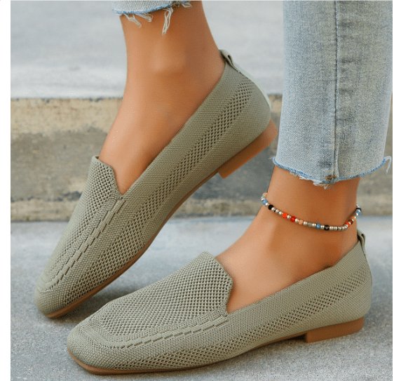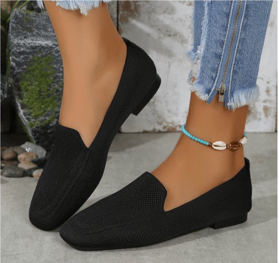 Erhöhen Sie Ihr Sommerschuhwerk mit den gestrickten flachen Schuhen von Layra. Diese flachen Schuhe sind atmungsaktiv und stilvoll und verfügen über ein unifarbenes Muster und ein quadratisches Zehendesign, das Komfort und Raffinesse für Abenteuer bei warmem Wetter bietet. Mit einem atmungsaktiven Obermaterial und einem Knöchelriemen-Detail bieten sie eine perfekte Mischung aus Funktionalität und Mode.